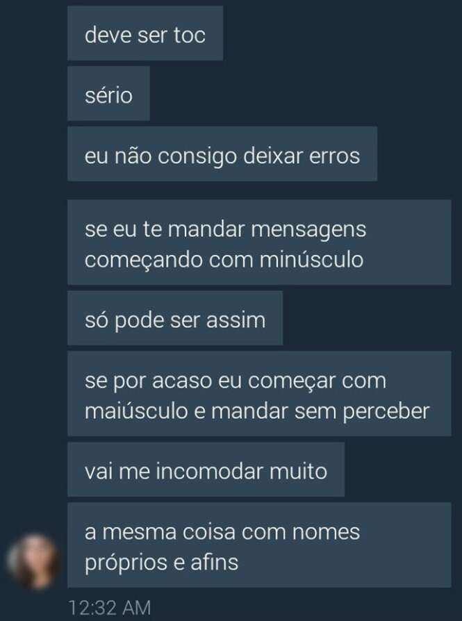 Seleção traz 14 conversas que todo perfeccionista vai entender. Mensagens são hilárias e típicas de quem se atenta aos mínimos detalhes. Foto: Twitter: @lu16243017