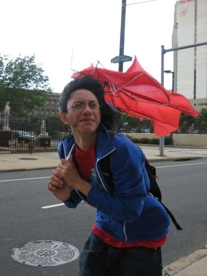 Quem mais sofre com os ventos são os guarda-chuvas e sombrinhas