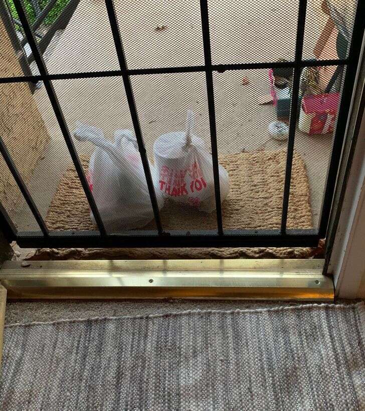 8. “Minha comida foi entregue bem na frente do meu portão de tela, então não posso abri-lo sem derrubar tudo”