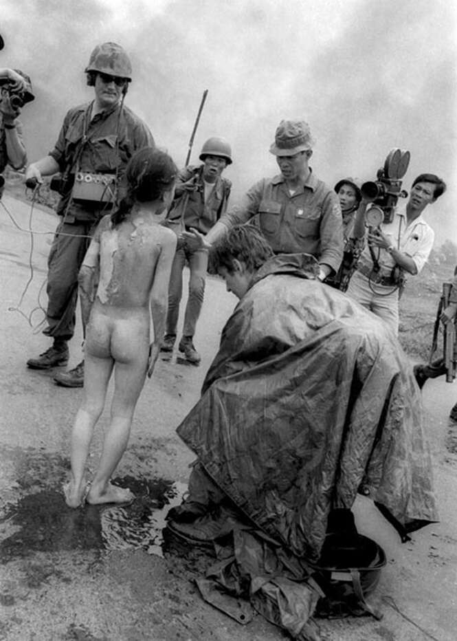 A imagem da menina Kim Phuc correndo nua fugindo de sua aldeia em chamas no Vietnã após ter sido atingida com napalm, conjunto de líquidos inflamáveis à base de gasolina gelificada, é uma das fotos mais conhecidas em todo o mundo.