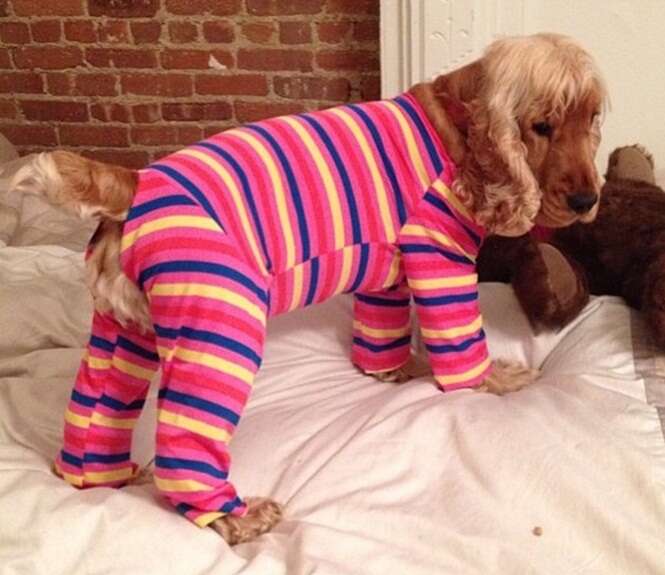 Alguns donos não deixam essas criaturinhas fora da moda nem mesmo no momento de dormir. Os pequenos ganham roupinhas específicas para a hora do sono, e parecem gostar de todo esse mimo.