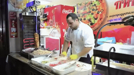 Eles efetuam verdadeiros malabarismos com a comida, exibindo um sincronismo perfeito em seus movimentos.