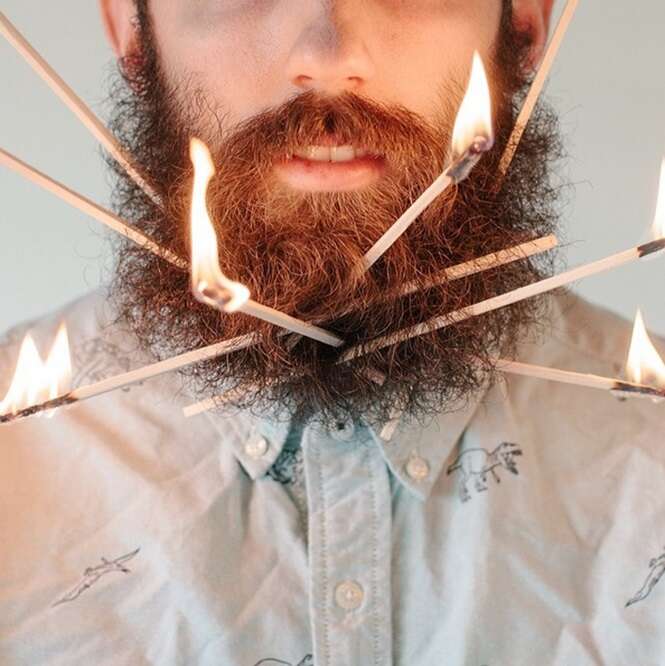 Artista faz sucesso com série de imagens onde coloca o máximo de objetos diferentes em sua barba