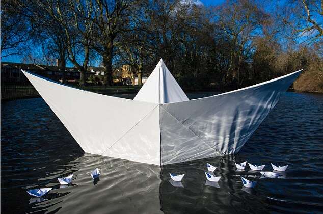 Barco de papel gigante é criado para transportar pessoas em um lago na Inglaterra