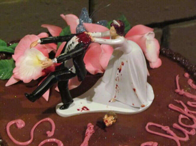 E para comemorar esse momento importante na vida de muitos casais, os mesmos encomendam deliciosos bolos de divórcio, com uma decoração nada amigável, envolvendo até mesmo enfeites de assassinatos.