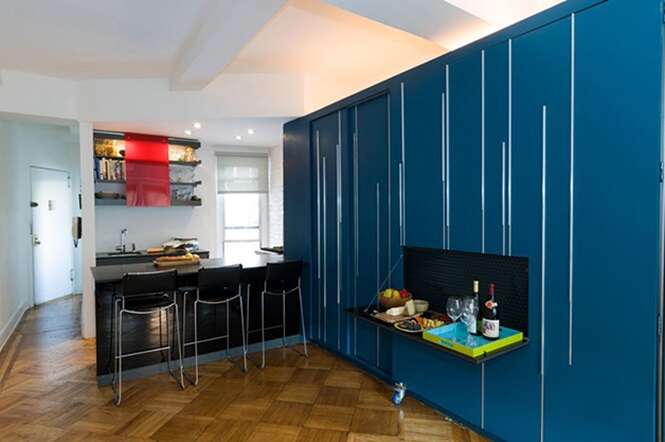 Conheça o apartamento de 35 m² que mantém a mobília escondida e cria espaço para receber os amigos