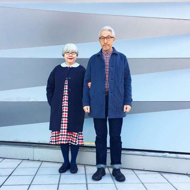 Em um relacionamento de 37 anos, esses japoneses mostram que sabem combinar bem a roupa escolhida.