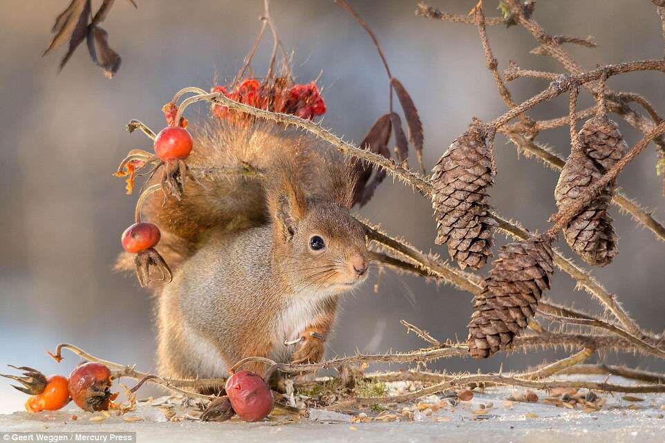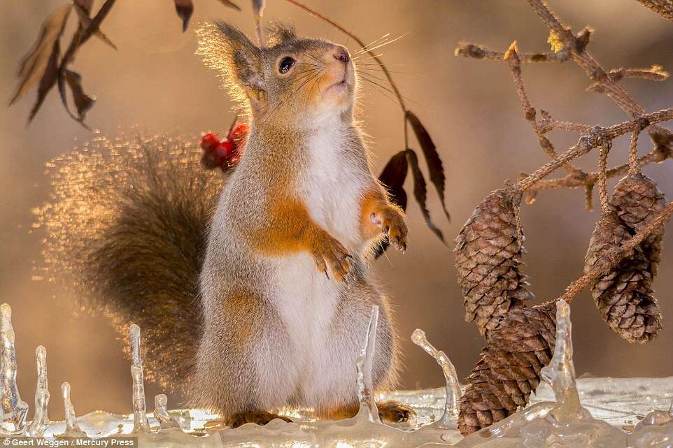 Geert Weggen, um fotógrafo que flagrou na aldeia sueca de Bispgarden, esquilos em um jardim gelado, vem fazendo sucesso com suas imagens.