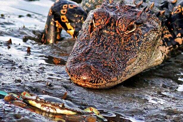 Veja o momento incrível em que caranguejo encara jacaré e vence batalha