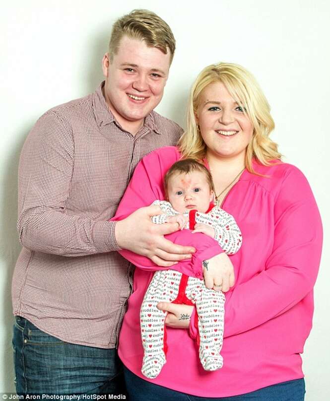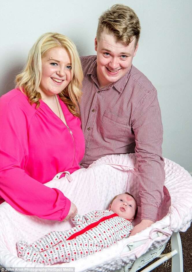 Jade Sparham, de 20 anos de idade, e Liam Scaife, de 21, de Skegness, Lincolnshire, Reino Unido, tiveram seu primeiro filho, Poppy-Rae, que atualmente tem cerca de 3 meses de vida, no ano passado.