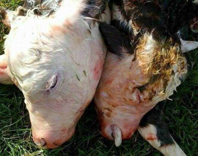 Bezerro nasce com duas cabeças e seis pernas após sofrer mutação supostamente ocasionado por produtos químicos tóxicos