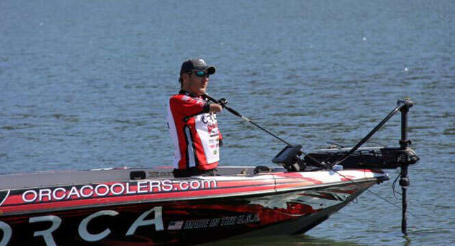 Clay Dyer, de 36 anos, segura a haste da vara de pesca entre o pescoço e ombro para conseguir lançar a isca. A parte que possui do braço direito ajuda a operar o carretel, realizando as execuções necessárias para tirar o peixe para o barco quando este é fisgado.