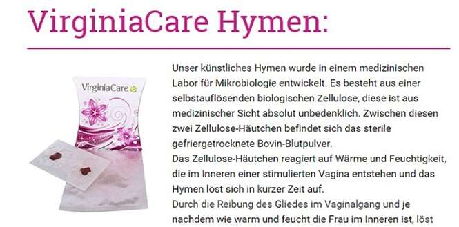 “Virginia Care”, uma empresa alemã, está vendendo hímens falsos para muçulmanas que tiveram relações íntimas antes do casamento se passarem por virgens.