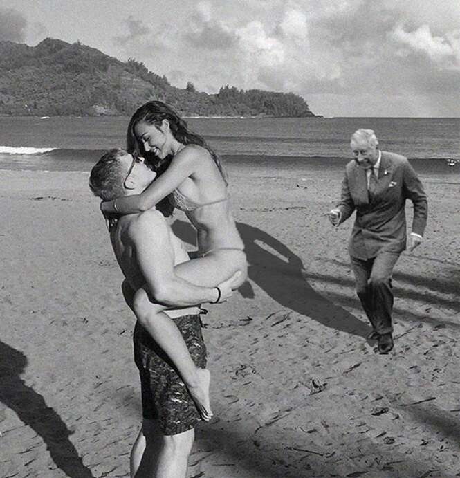 A mulher em questão pediu ajuda para realizarem uma edição na ilha vista ao fundo da fotografia original, para se parecer com uma imagem de revista.