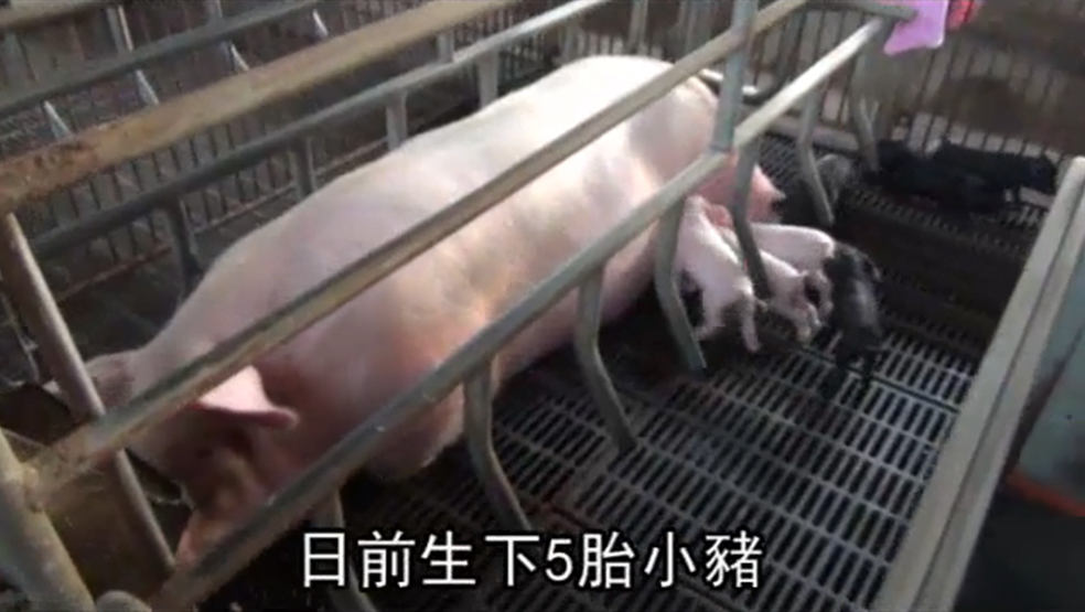 Uma porca de raça mista deu à luz cinco leitões em Yunlin, Taiwan, na semana passada, sendo que um deles nasceu com duas bocas e dois narizes.