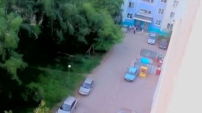 Mas, para a infelicidade do romeu atrapalhado, a mulher estava tomando banho, e Pavel acabou ficando pendurado e balançando perigosamente nas alturas, oito andares acima do solo.