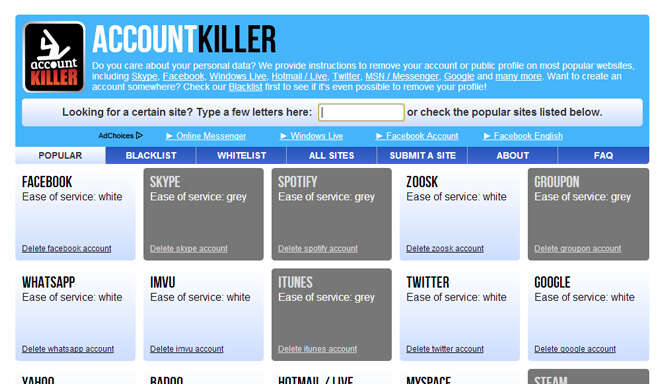 Precisa deletar alguma conta em um serviço online e não sabe como? O site Account Killer dá uma força para você mostrando o caminho das pedras. Sites como Facebook,Hotmail, Skype, Twitter e iTunes estão entre as opções. Acesse o site clicando aqui.